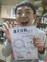 大木こだまひびき師匠のお弟子さんで、男女コンビ「漫天」の大木はんすけ君です。 写真はいつもこのポーズです。 笑林寺も出てまして、なんやかんやで長い付き合いになります。 おっとりしてて色んな先輩からも可愛がられてますわ! そんなはんすけ君から告知です。 漫天単独ライブ「漫天日和」vol.2 日時:6月30日(金) 開演:19時 会場:ヨシモト∞ホール 料金:1000円 出演:漫天 ゲスト:あり お時間ありましたら、ぜひお越し下さい!(はんすけ) その前に今週金曜の僕の単独イベント来て下さい(^o^)/ |
